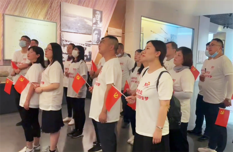 6月,新安紅色主題月正式開啟。在“重走紅軍西路,獻(xiàn)禮建黨100周年,匠心打造百年新安”主題黨日活動(dòng)中,全體黨員干部齊聚甘肅張掖高臺(tái)縣的中國工農(nóng)紅軍西路軍紀(jì)念館前,合唱紅歌《沒有共產(chǎn)黨沒有新中國》,回顧當(dāng)年西路軍英勇奮戰(zhàn)、血決祁連的悲壯歷程,向壯烈犧牲的革命先烈們致以最崇高的敬意。在看到最慘烈的高臺(tái)攻防戰(zhàn)一役的介紹時(shí),不少黨員深受觸動(dòng)、眼含熱淚。
